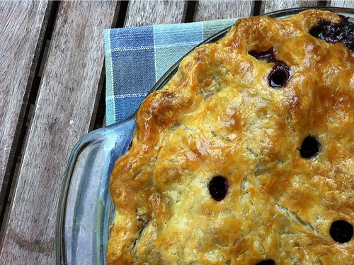 Every year about this time, I am transported back to one of my fondest childhood food memories: blueberry pie. My mother is the youngest of her family and that resulted in our fortune of having cousins that are much older than ourselves. One summer my cousins dropped by with two white pails full of freshly picked blueberries that my mom magically transformed into a luscious blueberry pie.